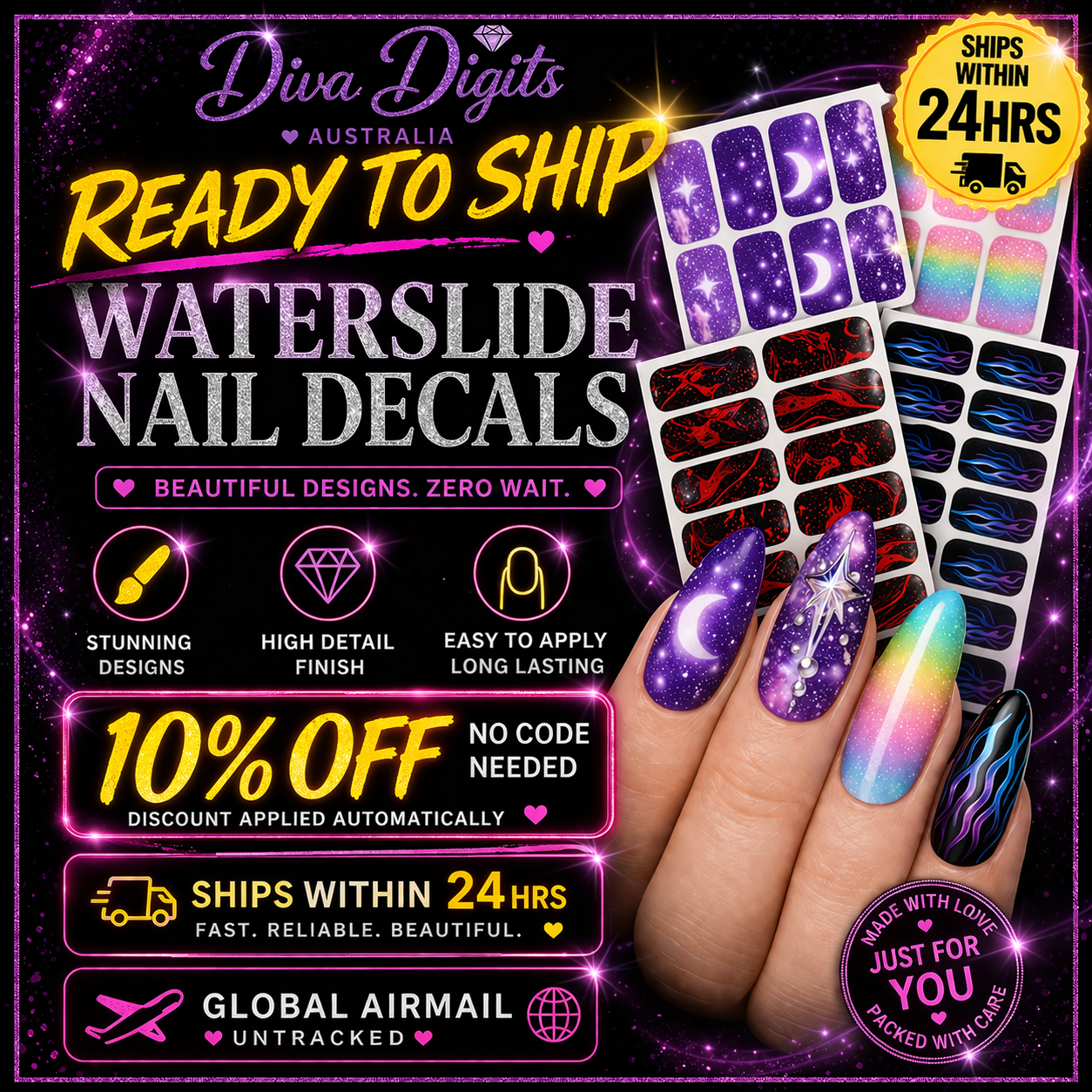 • Full Nail Waterslide Decals: please allow 2 days prior to shipping