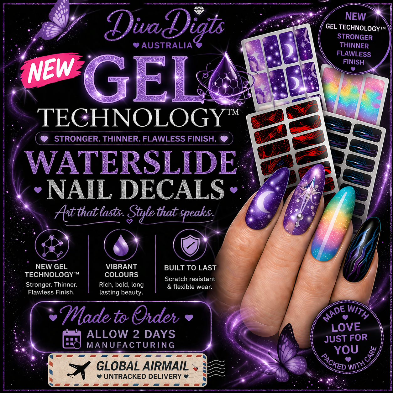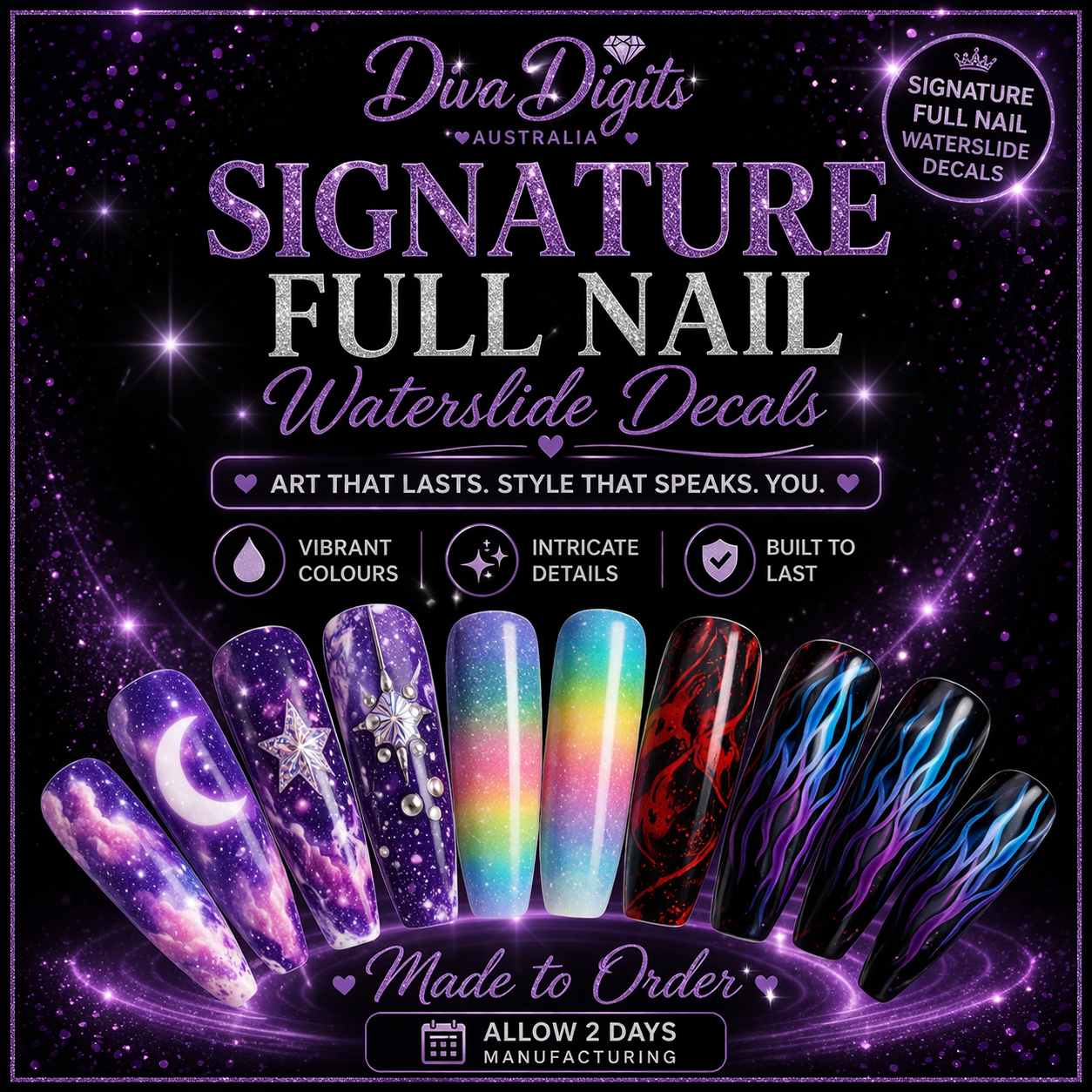 At Diva Digits, we create designer full nail waterslide decals using original artwork you won’t find anywhere else in the world.