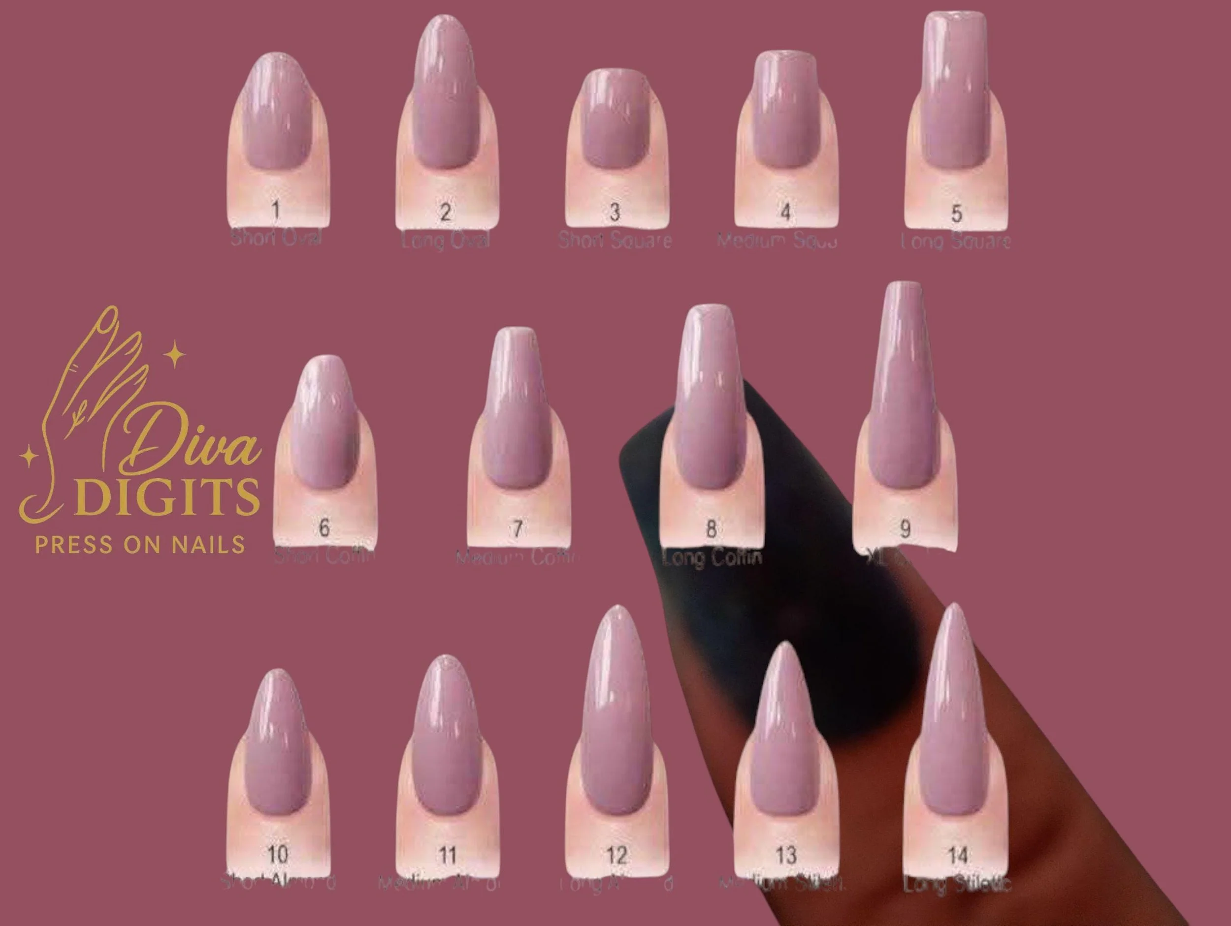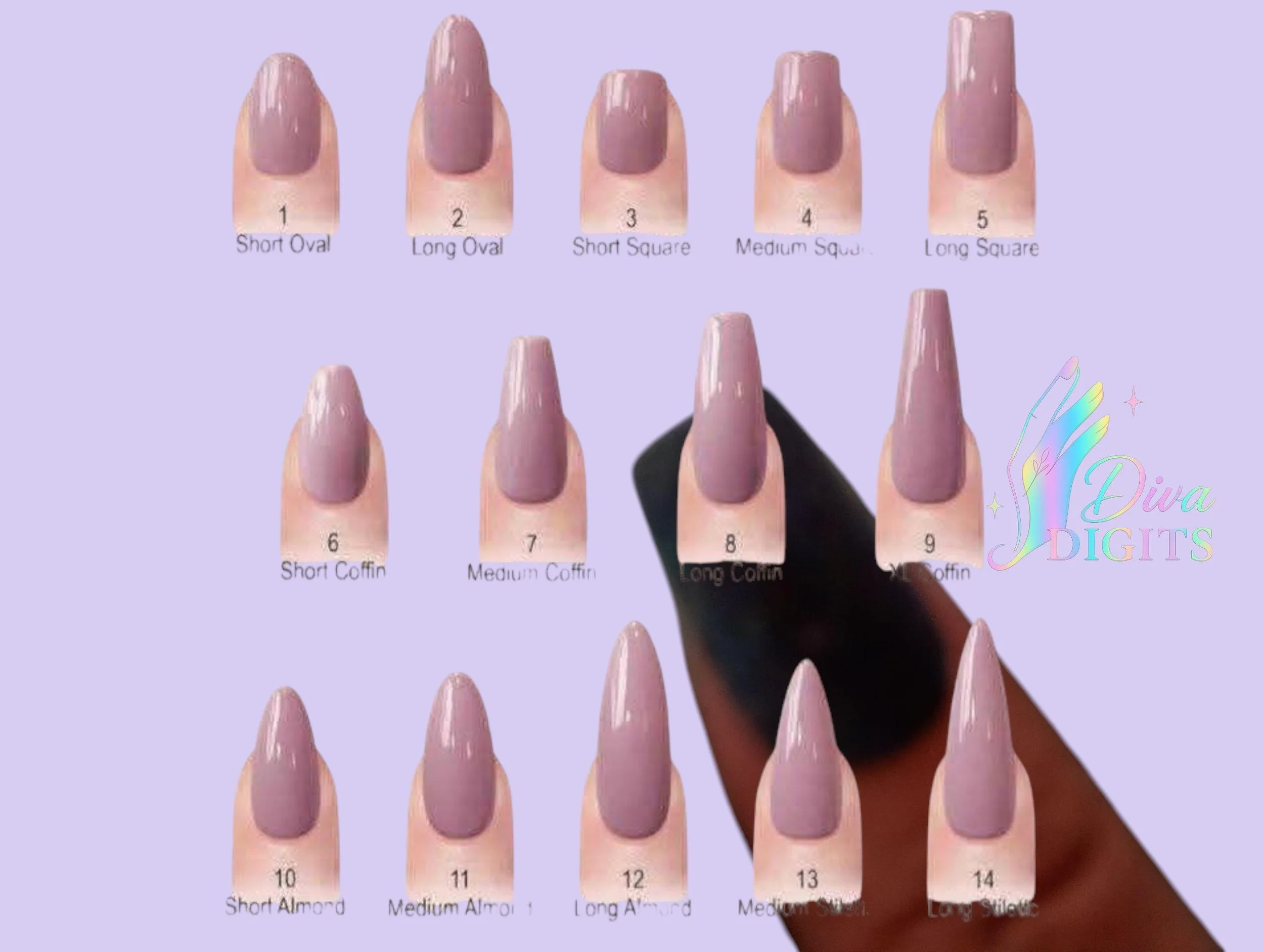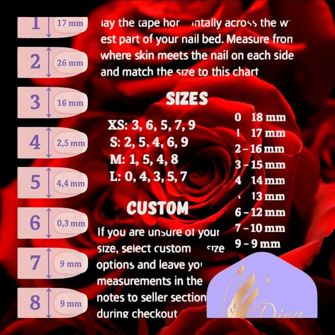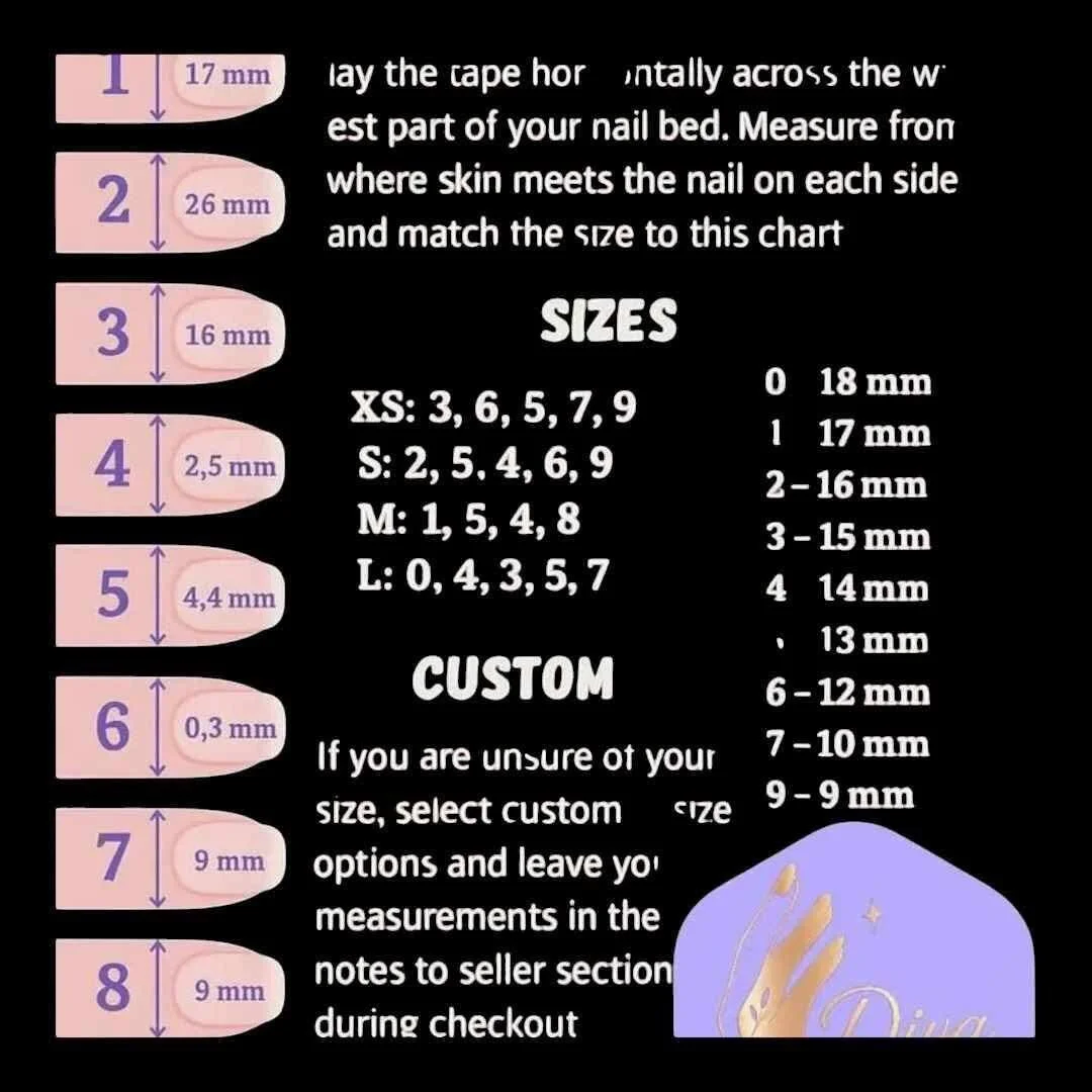 Diva Digits Nail Sizing Kit | All 10 Sizes 0–9 | Shape & Length | Custom Fit Press On Nails