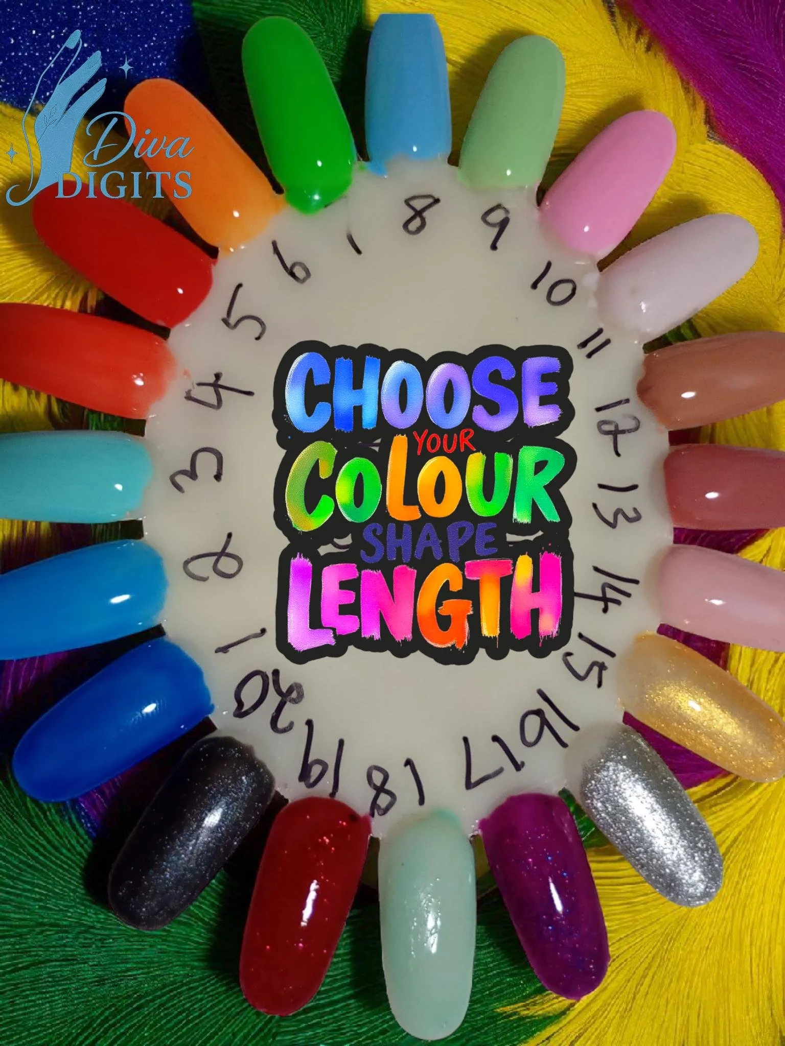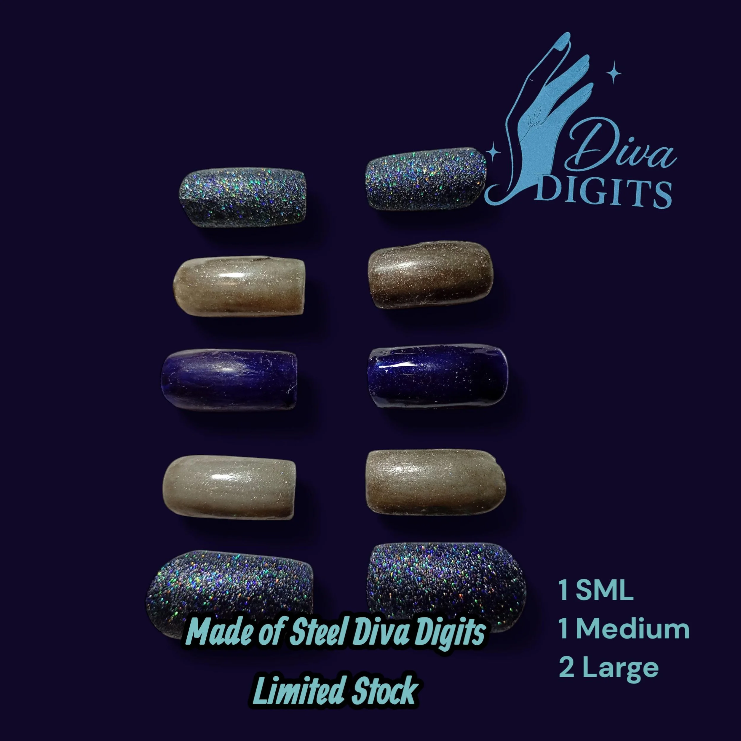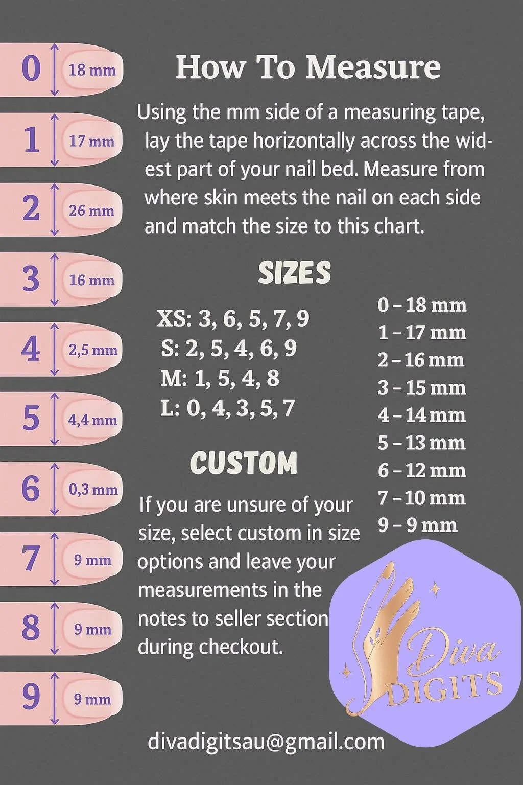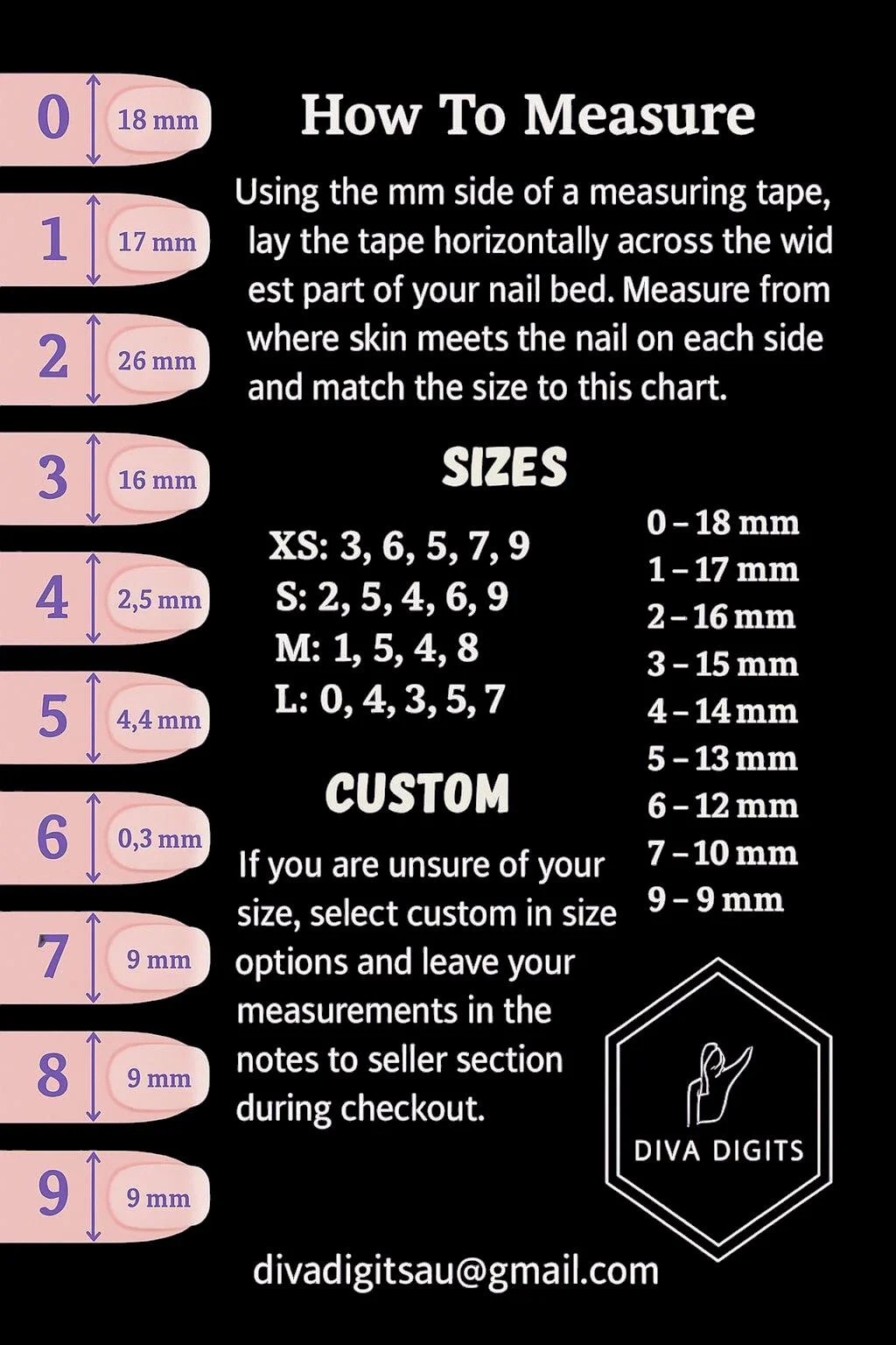 Diva Digits Nail Sizing Kit | All 10 Sizes 0–9 | Shape & Length | Custom Fit Press On Nails