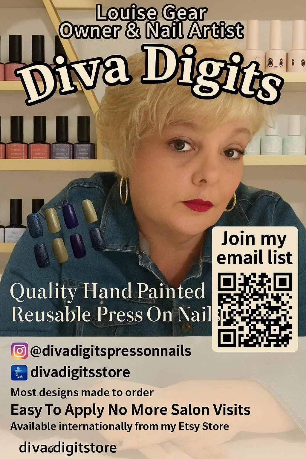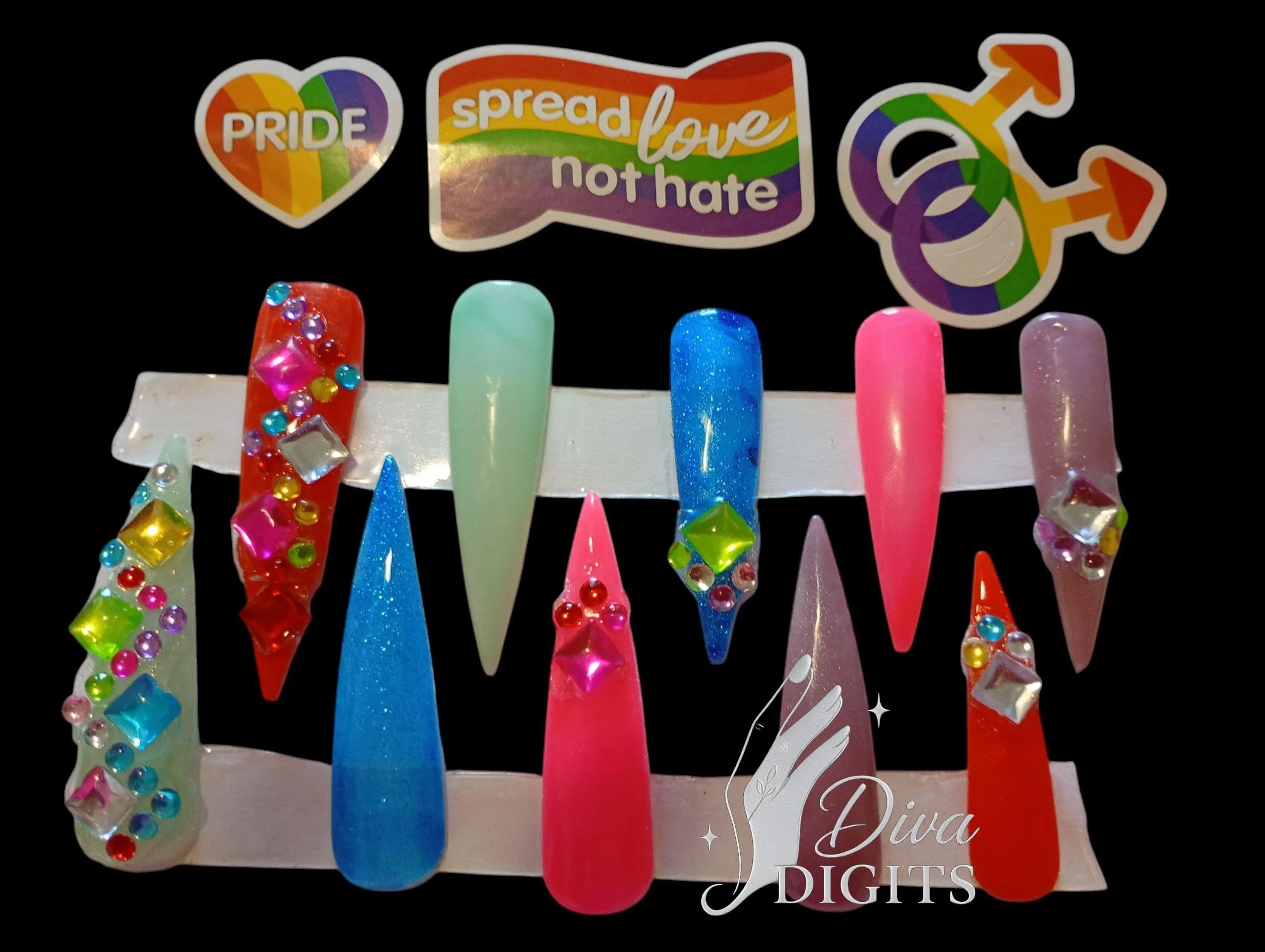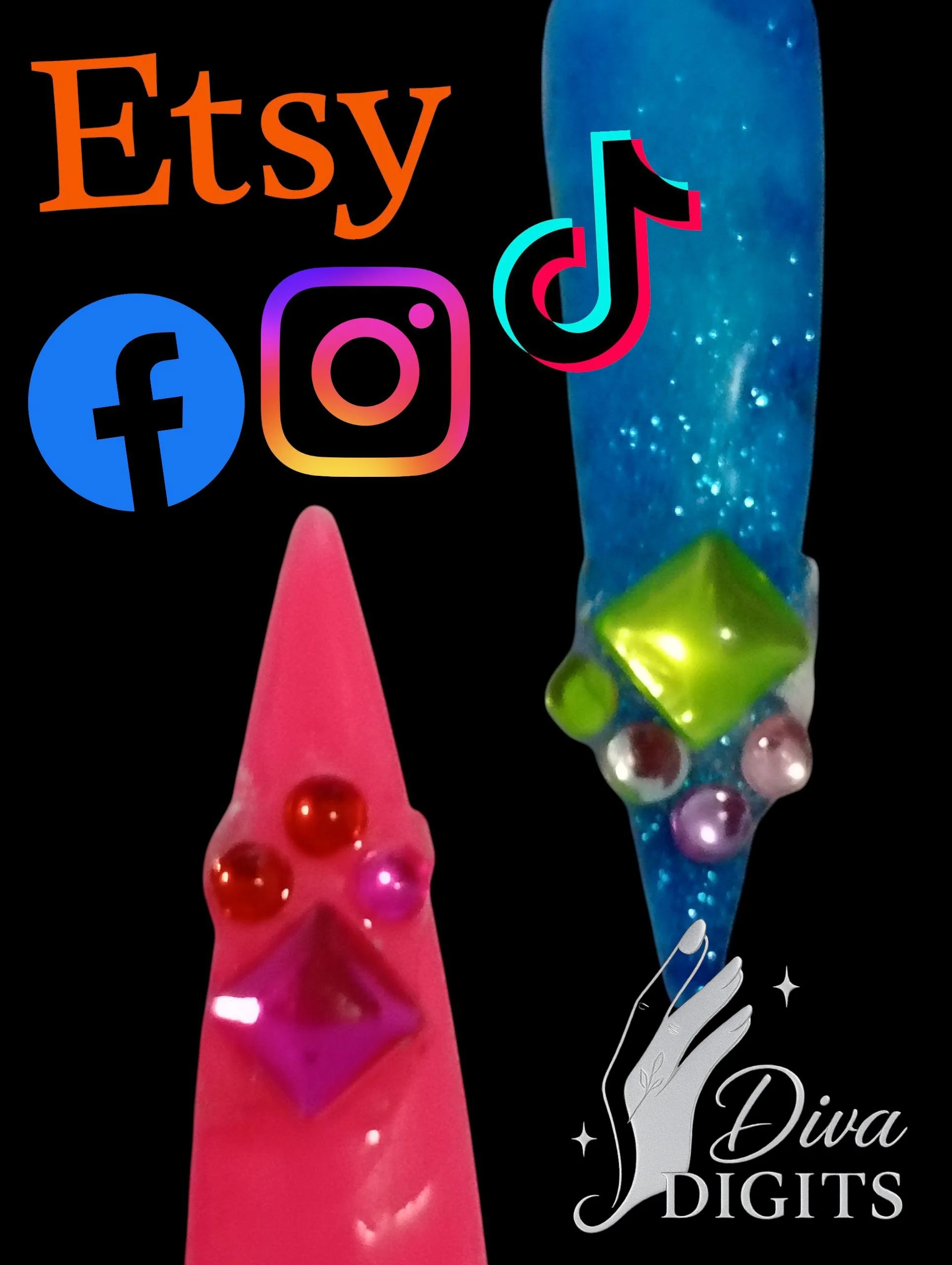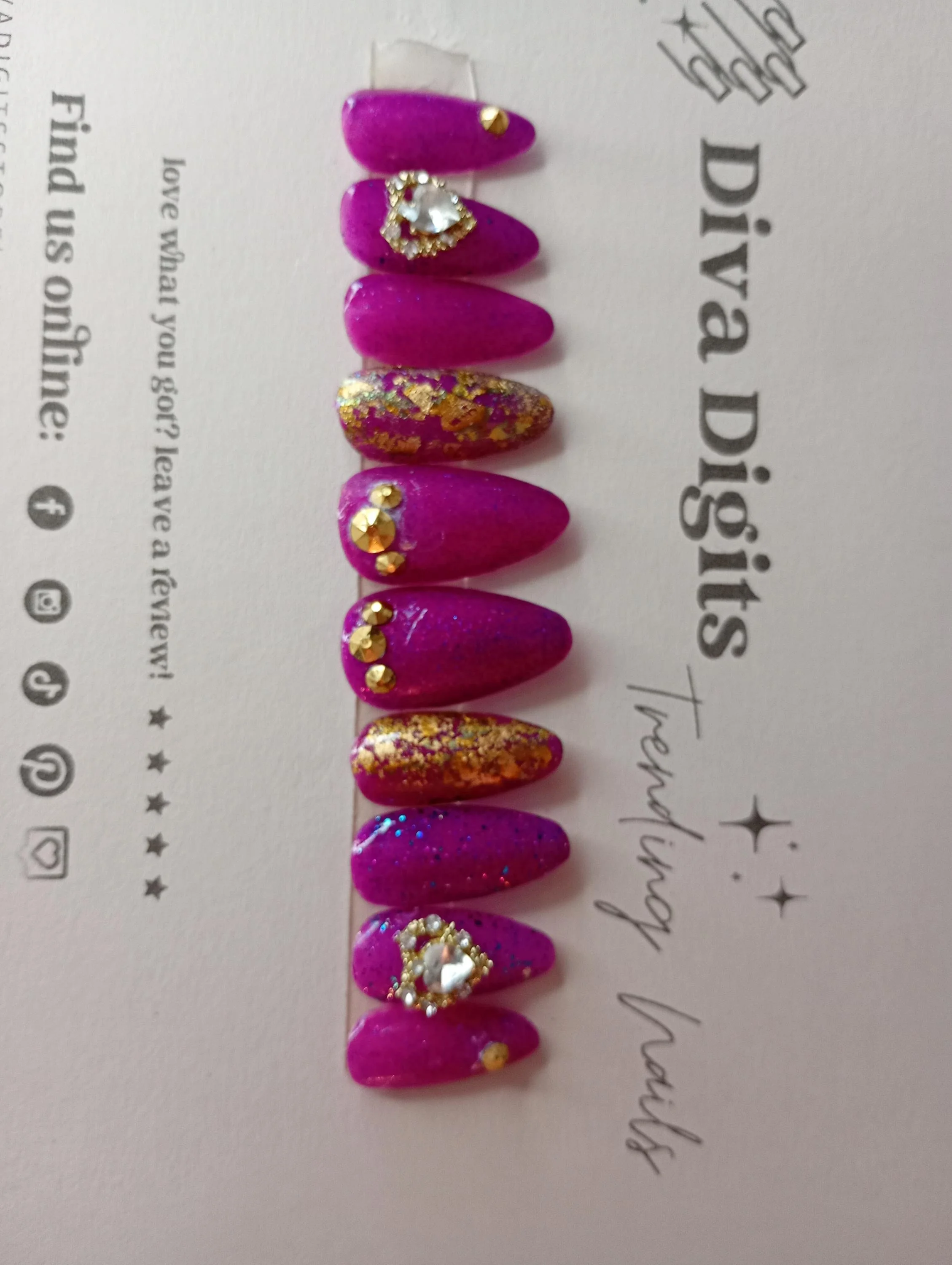 Diva Digits offers luxury press-on nails and full cover waterslide nail decals, including hand painted gel press-ons, waterslide decal gel press-ons, and ready-to-wear full nail waterslide decals. Each design is created with premium materials, attention to detail, and boutique-level craftsmanship. New designs are added daily.